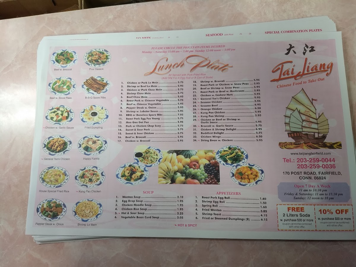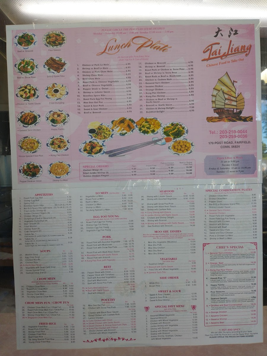 Tai Jiang Chinese Restaurant Menu